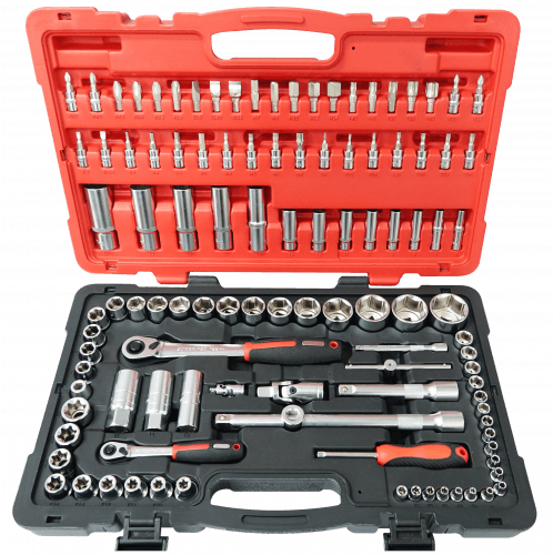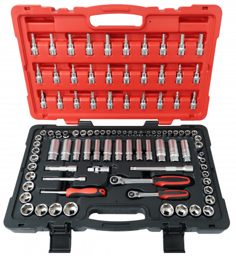 111 pcs 1/2" + 1/4" Socket Set with Bicolor Blow-Mold Case